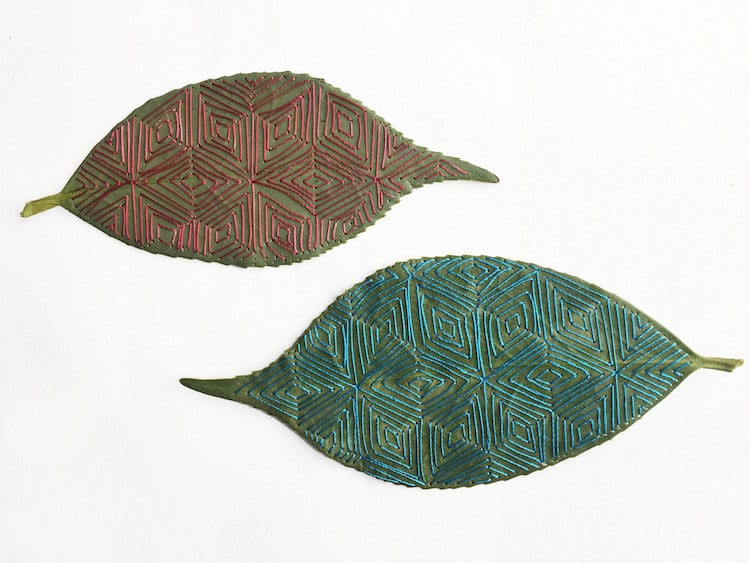 Cô ấy ghép các thiết kế hình học và trừu tượng lên những chiếc lá tạo ra sự kết nối giữa con người và thiên nhiên.