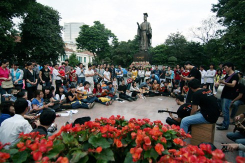 Biểu diễn những ca khúc Nga nổi tiếng tại phố đi bộ Hồ Gươm