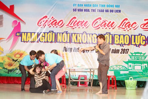 Một tiểu phẩm trong chương trình Giao lưu câu lạc bộ Nam giới nói không với bạo lực gia đình. (Ảnh báo Đồng Nai) |