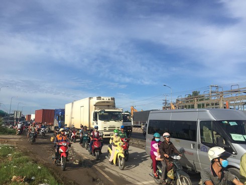 Sự cố trên xảy ra vào thời gian cao điểm buổi sáng khiến hàng ngàn phương tiện ùn ứ, nối đuôi nhau trên Quốc lộ 1.