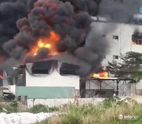Lửa bùng phát dữ dội tại khu nhà xưởng công ty sản xuất giày da. |