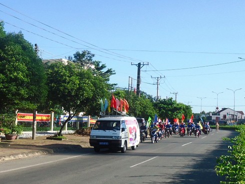 Đoàn diễu hành tuyên truyền bình đẳng giới và chống bạo lực quá các trục đường chính trung tâm thị trần Phước Vĩnh, huyện Phú Giáo. |
