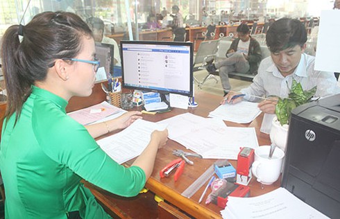 Cán bộ “một cửa” HĐND - UBND thị xã Bến Cát giải quyết thủ tục hành chính cho người dân. |