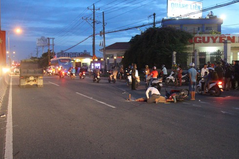 Vụ va chạm làm 2 người ngồi trên xe máy ngã xuống đường, người phụ nữ ngồi sau bị văng ra phần đường dành cho ô tô, bị chính chiếc khách này cán qua người tử vong tại chỗ. Nam thanh niên may mắn thoát chết.