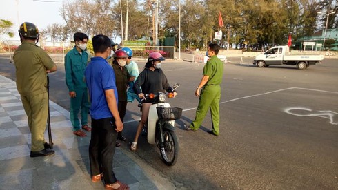 Tại phường Hưng Long, tổ công tác lập chốt kiểm tra và xử phạt những người không mang khẩu trang khi đến nơi đông đúc là bãi tắm Đồi Dương.