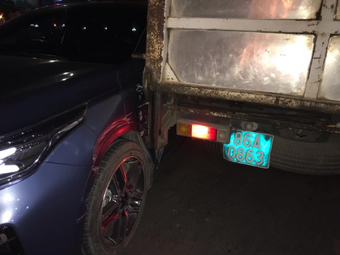 Tại hiện trường, đầu xe ô tô tiếp giáp với đuôi xe CSGT kẹt cứng. Tài xế bước xuống xe có dấu hiệu say xỉn được đưa đi kiểm tra nồng độ cồn. Rất may là chiếc ô tô kịp dừng lại, tránh gây nguy hiểm cho các phương tiện lưu thông trên đường.