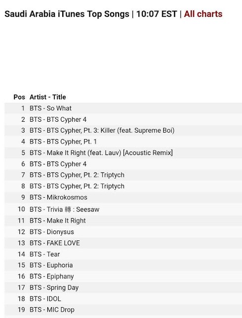 Sự tức giận và phẫn nộ của dư luận, cụ thể là cộng đồng người hâm mộ BTS vẫn chưa dừng lại ở đó. Sau khi sự việc gây khó hiểu trên diễn ra thì hiện tại, ARMY đã cùng nhau đưa những ca khúc và album của BTS quay trở lại BXH âm nhạc quốc tế sau gần 7 tháng phát hành.