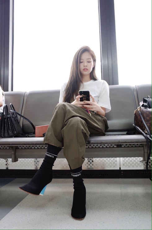 Từ lâu Jennie luôn nổi tiếng với những mẫu outfit đầy năng động, cá tính nhưng không kém phần đơn giản như áo thun basic cùng quần thụng bó kiểu quân đội như thế này. Quả thật mẫu item như bên dưới vô cùng phù hợp với cô nàng sở hữu khí chất girlcrush sang chảnh như Jennie.