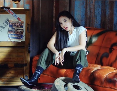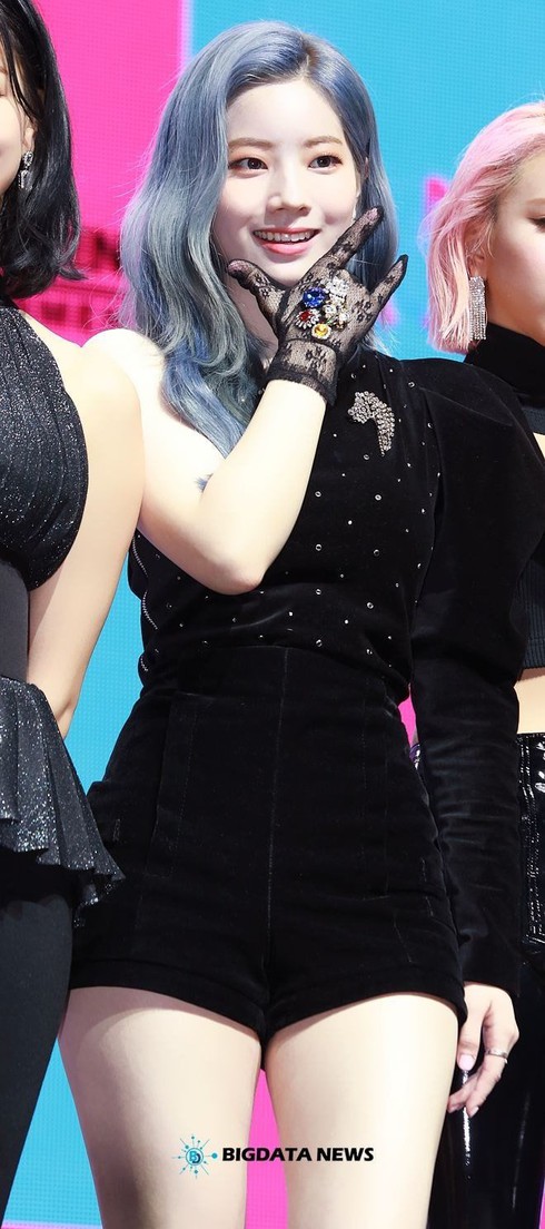 Trong khi đó, Dahyun của TWICE chỉ diện độc bộ jumpsuit đơn giản và phối cùng găng tay ren cùng màu lấp lánh. Kiểu trang phục này không chỉ tôn lên nước da trắng sáng đặc trưng của Dahyun mà còn vô cùng phù hợp với hình tượng girlcrush mạnh mẽ, bí ẩn trong ca khúc "Fancy" của nhóm.