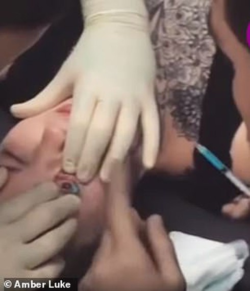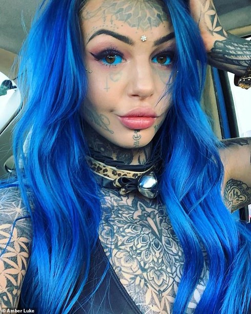 Cụ thể, cô nàng tên là Amber Luke, 24 tuổi. Trước khi thực hiện ca xăm hình vô cùng nguy hiểm này, Amber đã trải qua không ít những cuộc phẫu thuật có phần cực đoan như "tách lưỡi làm 2 phần" hay "nong rộng lỗ tai".
