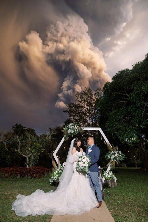 Cặp vợ chồng liều lĩnh và đầy tính tranh thủ này là Chino và Kat Vaflor, cả hai đã tổ chức buổi lễ thành hôn ở một địa điểm chỉ cách ngọn núi lửa Taal đang hoạt động trở lại 16km. Chính nhờ sự liều lĩnh bất chấp của mình, cả hai đã có những khản khắc để đời với bộ ảnh cưới dưới cột khói, tro lúi lửa phun trào trên bầu trờ.