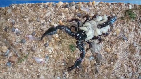 Bọ cạp mẹ cõng đàn con trên lưng đi khắp Ấn Độ. |