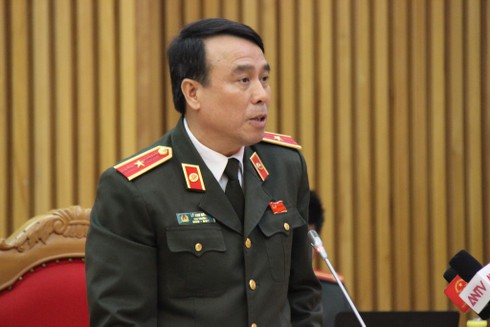 Thiếu tướng Lý Anh Dũng trả lời báo chí. |