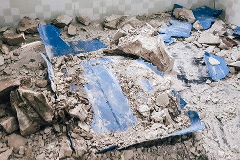 Hiện trường sau khi đập phá các khối bê tông để đưa 2 thi thể nạn nhân ra ngoài. |
