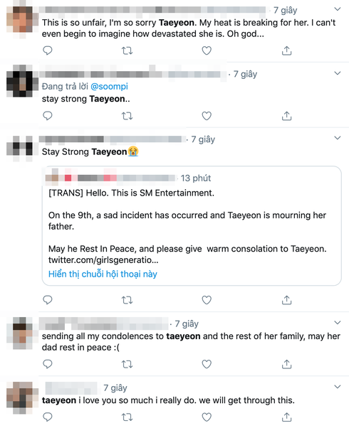 Những lời động viên, an ủi Taeyeon cũng như gia đình của nữ ca sĩ được người hâm mộ khắp thế giới nhắn gửi trên các nền tảng mạng xã hội trực tuyến.