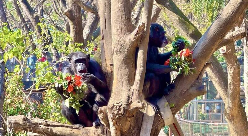 Sở thú Shoushan ở thành phố Cao Hùng của Đài Loan đã tổ chức lễ Tình nhân (14/2) bằng cách tặng những bó hoa đặc biệt và vô cùng hấp dẫn ăn được cho các loài vật sống tại đây.