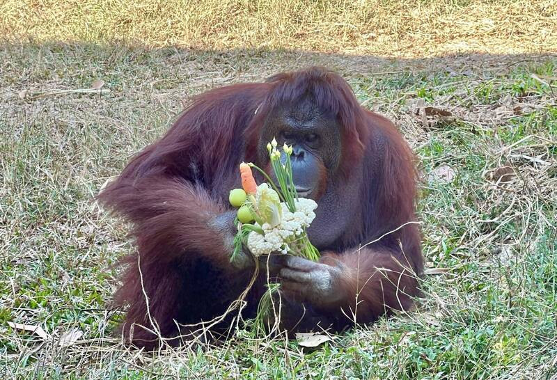 Theo Liberty Times, trong khi các cặp đôi trao lời yêu thương trong ngày Valentine, nhiều loài động vật ở sở thú Shoushan như tinh tinh, đười ươi, gấu và vẹt cũng được chung vui khi được tặng những bó rau và quả để “mở tiệc”.