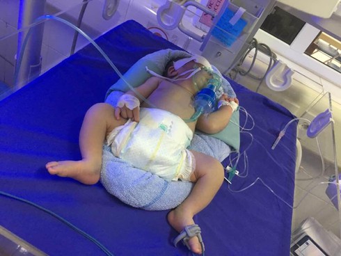 Trường hợp thứ 2 là bé Mai Thế Q.(7 ngày tuổi), thường trú tại Phường Thanh Sơn, Tp Uông Bí, tỉnh Quảng Ninh. Bé vào viện trong tình trạng sau sinh ngày thứ 3 xuất hiện vàng da nhiều từ vùng mặt đến tay chân, trẻ bỏ bú được gia đình đưa vào viện khám.
