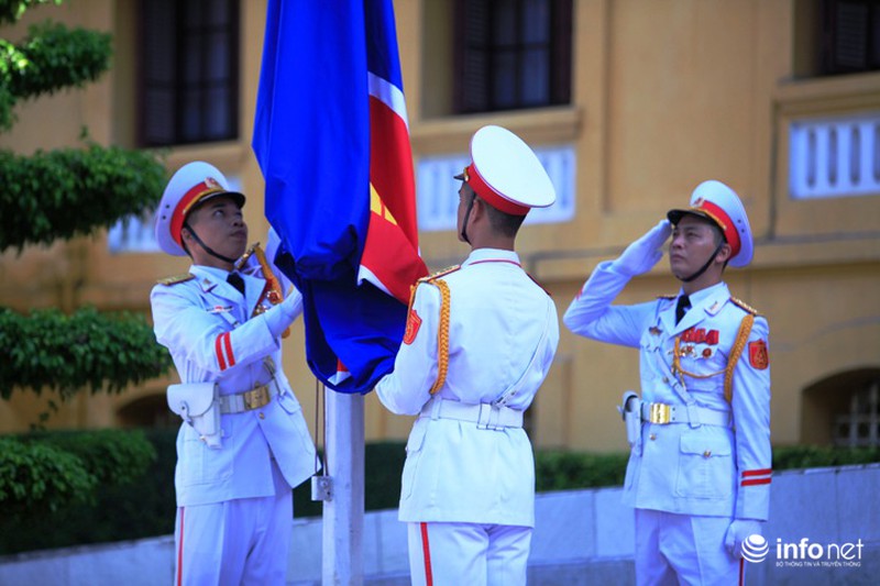 Đến dự Lễ Thượng cờ có ông Bùi Thanh Sơn - Thứ trưởng Thường trực Bộ Ngoại giao Việt Nam, lãnh đạo một số Bộ, Ban, Ngành, UBND TP Hà Nội cùng đại diện đại sứ quán các nước ASEAN và một số nước khác tại Hà Nội. |