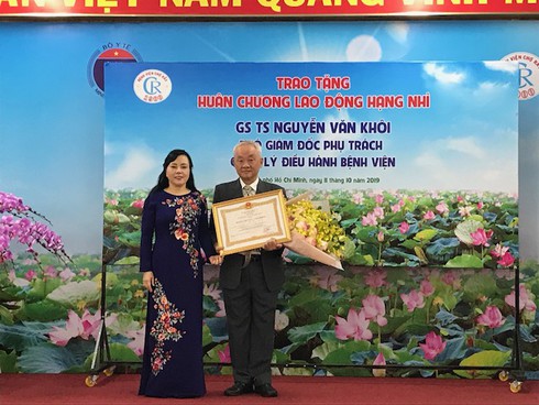 Tại buổi lễ, thừa ủy quyền của Chủ tịch nước, PGS.TS Nguyễn Thị Kim Tiến – Bộ trưởng Bộ Y tế đã trao Huân chương Lao động hạng Nhì cho Thầy thuốc nhân dân, GS.TS Nguyễn Văn Khôi – Phó Giám đốc phụ trách quản lý điều hành Bệnh viện Chợ Rẫy.