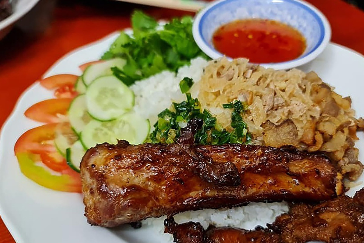 Phở được nhắc đến trong danh sách với tên gọi "món ăn quốc dân". Nó cũng là một trong những món ăn được yêu thích trên thế giới nhờ hương vị độc đáo và sự đơn giản trong cách bày trí món ăn. Ảnh: Kiều DươngCơm tấm là một trong những món quen thuộc và đặc trưng của TP HCM. Người dân dùng làm món điểm tâm và trong các bữa ăn chính. Món này có thể dễ dàng tìm thấy ở mọi nơi trong thành phố, từ các quán vỉa hè, trong hẻm đến nhà hàng sang trọng. Thành phần chính của món ăn gồm cơm, sườn tẩm gia vị, bì thái mỏng trộn cùng thính, mỡ hành và cà chua, dưa chuột thái mỏng. Ảnh: Dương QuốcBánh mì heo quay là một biến thể của bánh mì truyền thống, có nhân là thịt ba chỉ quay và pate, sốt mayonnaise, dưa chua, rau thơm. Du khách có thể tìm thấy món ăn này ở các hàng quán vỉa hè nhiều nơi, đặc biệt là TP HCM.