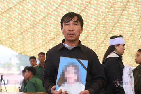 Ông Cao Văn Hường ôm di ảnh con gái. |