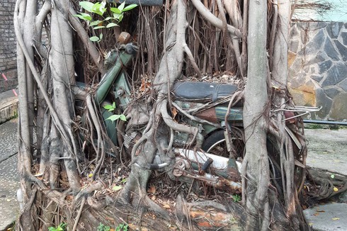 Ngày đó tôi chưa mê xe cổ như bây giờ. Mỗi ngày tôi sử dụng các chiếc xe đời mới để đi lại. Một thời gian dài, khi tôi nhìn lại nó thì phát hiện đã có 3 rễ cây bằng ngón cái tay thòng xuống, ôm trọn vào thân xe và gim xuống đất. 1 rễ ở bánh trước của xe, 1 rễ giữa thân xe và 1 rễ gần khu vực biển số xe.