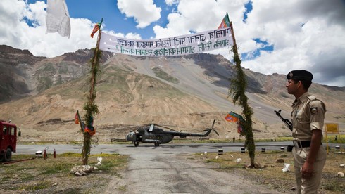 Binh sĩ Ấn Độ canh gác khu vực biên giới tại Kaza trên dãy Himalaya thuộc bang Himachal Prades của Ấn Độ. |