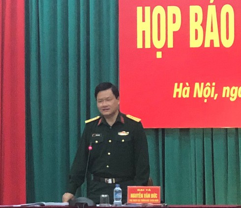 Đại tá Nguyễn Văn Đức, Phụ trách Cục trưởng Cục Tuyên huấn chủ trì buổi họp báo chiều 29-3 - Ảnh: T.H |