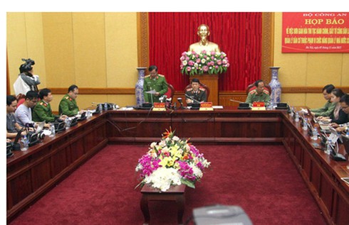 Chủ trì họp báo là Thiếu tướng Lương Tam Quang - Chánh văn phòng Bộ Công an, Trung tướng Trần Văn Vệ - Quyền Tổng cục trưởng Tổng cục Cảnh sát, Thiếu tướng Trần Thế Quân - Phó Cục trưởng Cục Pháp chế.
