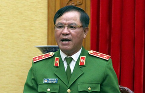 Trung tướng Trần Văn Vệ thông tin với báo chí. |