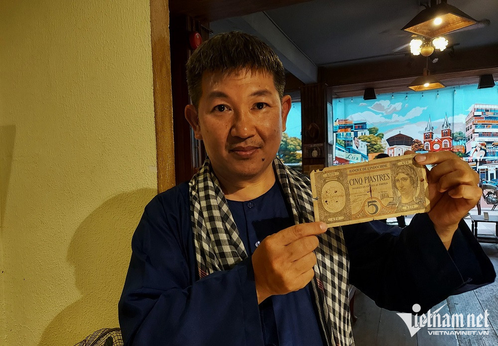 Hơn 200 tờ tiền trong bộ sưu tập của anh Huỳnh Minh Hiệp, chủ quán Cà phê Lúa Sài Gòn (quận Phú Nhuận, TP.HCM) mang trong mình câu chuyện lịch sử không nhiều người biết.