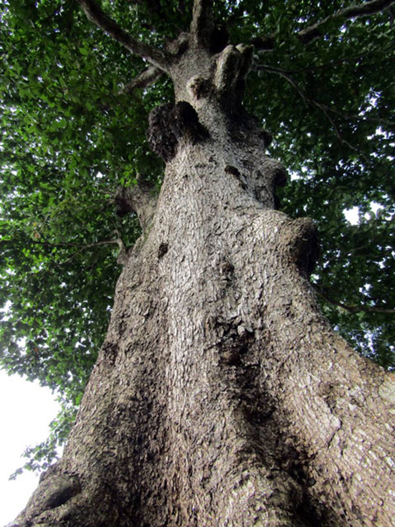 Người dân địa phương gọi cây bàng đá này là cây “cái”. (Ảnh: Dân Việt) Sở dĩ gọi cây bàng đá này “mồ côi bạn” là vì, trước năm 2012, bên cạnh cây bàng “cái” này còn có một cây bàng đá cổ thụ khác, người dân địa phương gọi là cây “đực”. Cả 2 cây bàng đá này đều đứng cạnh đình Phụng Tường. Cây “đực” chết khô do quá trình thi công một công trình giao thông tại địa phương. Cây bàng đá “mồ côi bạn” cao trên 40m, chu vi cây trên 10m, bộ rễ trên 20m. Cây có tán lá rộng và xanh tốt hơn so với 3 năm trước - thời điểm cây bàng đá đực bị chết. (Ảnh: Dân Việt) Ông Mai Kiên (Phường 5, TP Sóc Trăng), người có 42 năm làm nghề kinh doanh gỗ đã mua gốc cây bàng “đực” chết khô với giá 35 triệu đồng. Sau khi đốn hạ cây “đực” chết khô và di chuyển về nhà mình, đã có thương lái đến ngã giá mua 2 tỷ đồng nhưng ông Mai Kiên không bán. Hiện, ông Kiên đã thuê nhân công lột vỏ và điêu khắc gỗ chế tác theo những ý tưởng của mình để làm kỷ vật riêng cho gia đình. |
