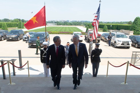 Bộ trưởng Quốc phòng Mỹ dành cho Đại sứ Phạm Quang Vinh nghi thức tiếp tân cao nhất tại Lầu Năm Góc. Nguồn: ĐSQ Việt Nam tại Hoa Kỳ |