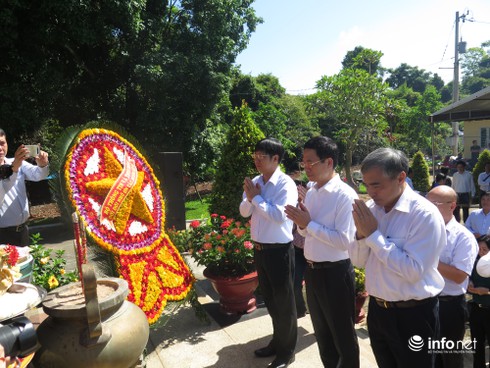 Lãnh đạo Bộ TT&TT thắp hương tại Nhà truyền thống Khu căn cứ Ban giao bưu vận và Ban thông tin liên lạc Trung ương Cục miền Nam. |