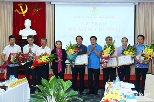 Cũng tại buổi lễ, Chủ tịch Tổng Liên đoàn Lao động Việt Nam Bùi Văn Cường đã trao Kỷ niệm chương “Vì sự nghiệp xây dựng tổ chức công đoàn” cho 7 đồng chí cán bộ lãnh đạo của Bộ TT&TT vì đã có nhiều đóng góp xây dựng tổ chức Công đoàn Việt Nam. |