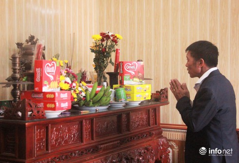 Do hôm nay cũng là ngày rằm, trưa nay bố Văn Hậu đã thắp hương như thường lệ và cầu chúc cho con trai mình "chân cứng đá mềm". |