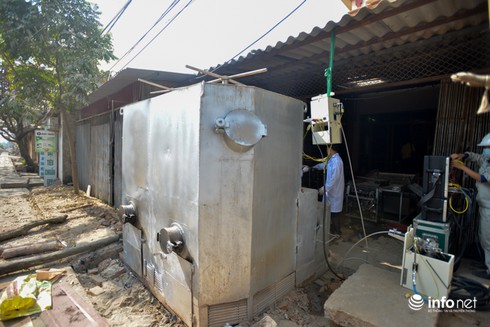 Mặt sau của chiếc máy xử lý rác thành dầu thô. |