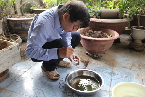 Một ổ bọ gậy sắp nở thành muỗi được các chuyên gia tìm thấy từ lọ cắm cây phất lộc của một nhà dân trên phố Thụy Khuê- Quận Tây Hồ-Hà Nội |