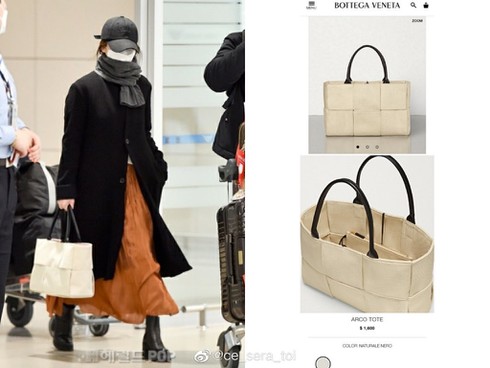 Song Hye Kyo xách túi trắng to bản hiệu Bottega Veneta Arco Tote có giá khoảng 1.600 USD tương đương hơn 37 triệu đồng |