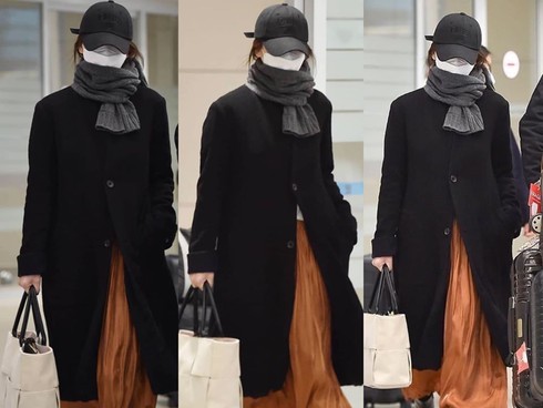 Song Hye Kyo ăn mặc kín mít, che mặt xuất hiện tại sân bay Incheon, Hàn Quốc |