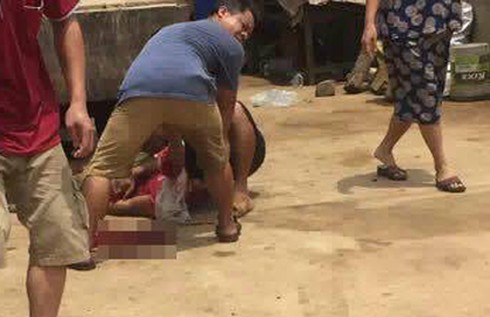 Nam thanh niên được mọi người đưa đi cấp cứu. |