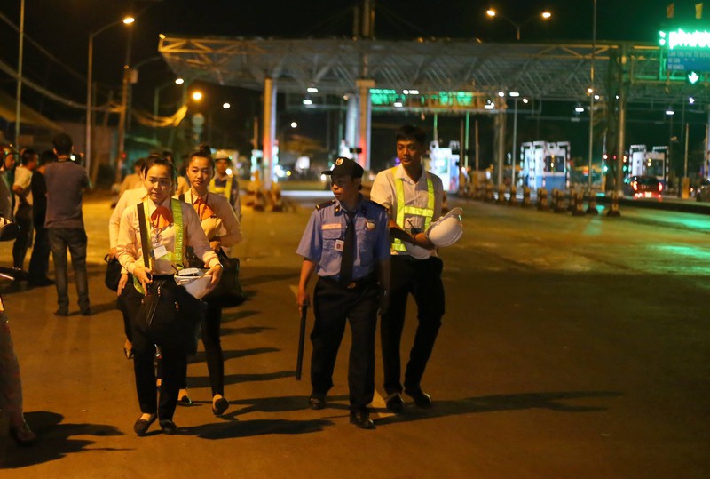 Nhân viên trạm rời cabin về nhà điều hành BOT Cai Lậy sau khi nhận được lệnh tạm ngưng |