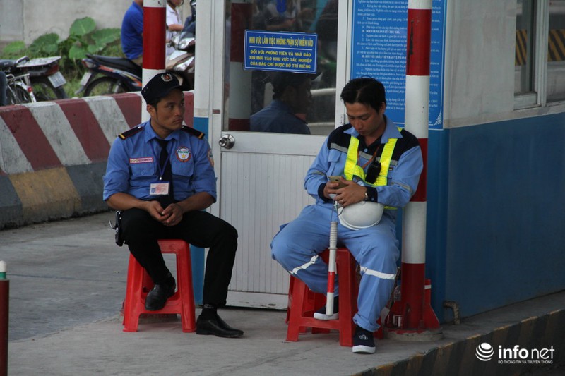 Nhân viên và bảo vệ trạm tỏ ra mệt mỏi sau mấy ngày thực hiện điệp khúc "thu phí - xả trạm - thu phí" |