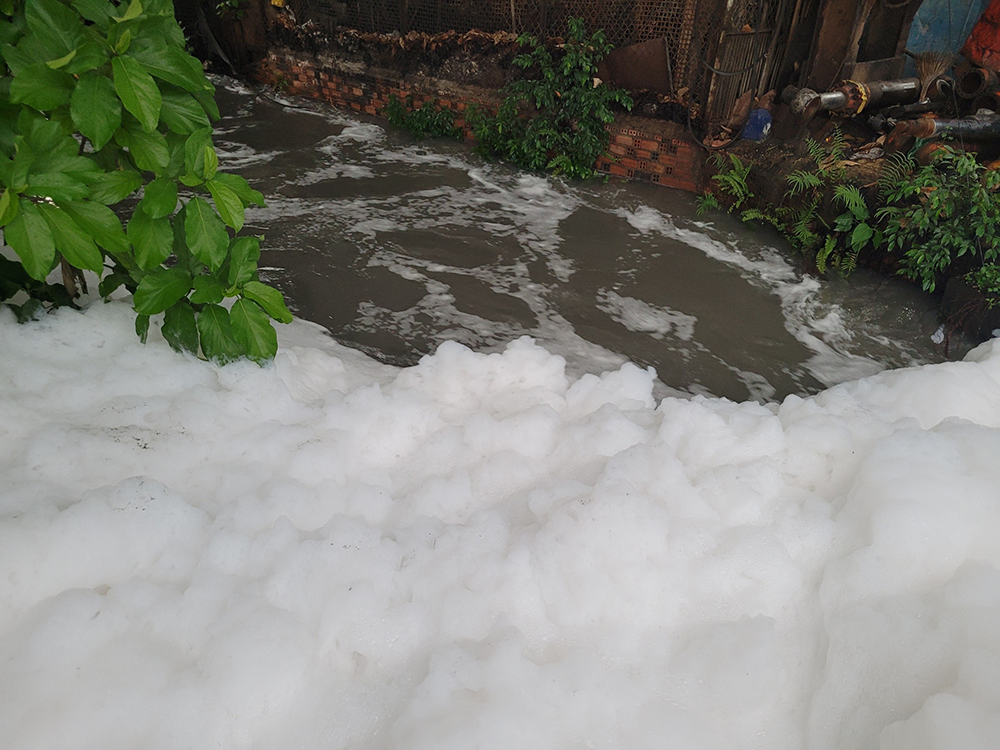 'Bọt trắng lạ, mùi hôi nồng nặc' xuất hiện khi mưa ngập ở Đồng Nai