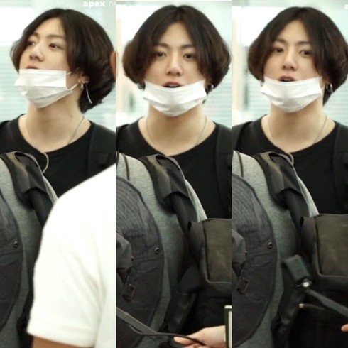 BTS có mặt ở sân bay Incheon chuẩn bị ra nước ngoài để quay chương trình giải trí mới. 7 chàng trai đeo khẩu trang kín mít nhưng không thể tránh nổi con mắt của fan. Đáng chú ý, Jungkook khiến fan bất ngờ với mái tóc dài cận cằm.
