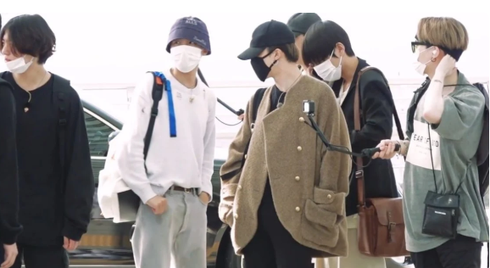7 chàng trai BTS xuất hiện chớp nhoáng ở sân bay Incheon. |