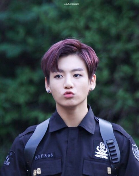 Jungkook BTS với mái tóc ngắn nhuộm hồng đỏ. |