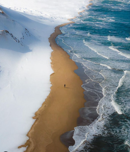 Bức ảnh ngoạn mục nơi tuyết, cát, sóng biển gặp gỡ gây sốt