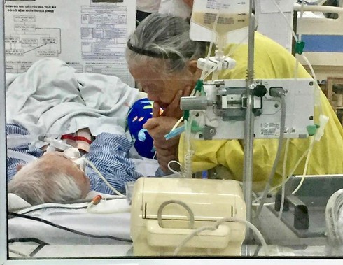 Những ngày cụ ông nằm viện, rất đông con, cháu thay phiên nhau, túc trực ở cạnh cụ, nhưng không yên tâm, cụ bà vẫn hàng ngày vào viện chăm ông.